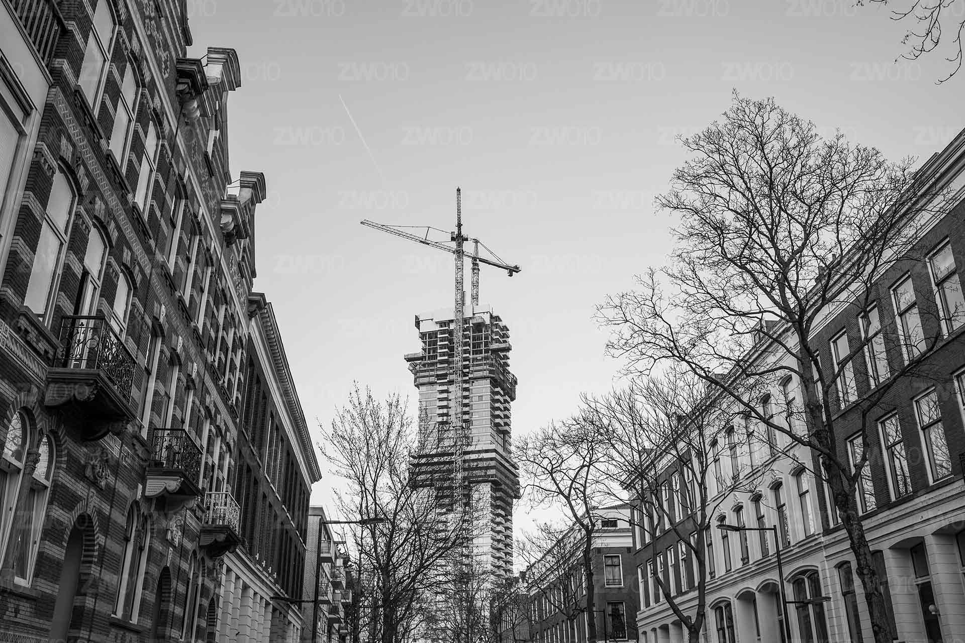 In deze foto zie je één van de nieuwste hoogbouwprojecten in het stadscentrum, de Cooltower, in constructie. Een prachtig beeld voor aan de muur voor de liefhebbers van de Rotterdamse Skyline, of toekomstige bewoners van deze bijzondere wolkenkrabber.