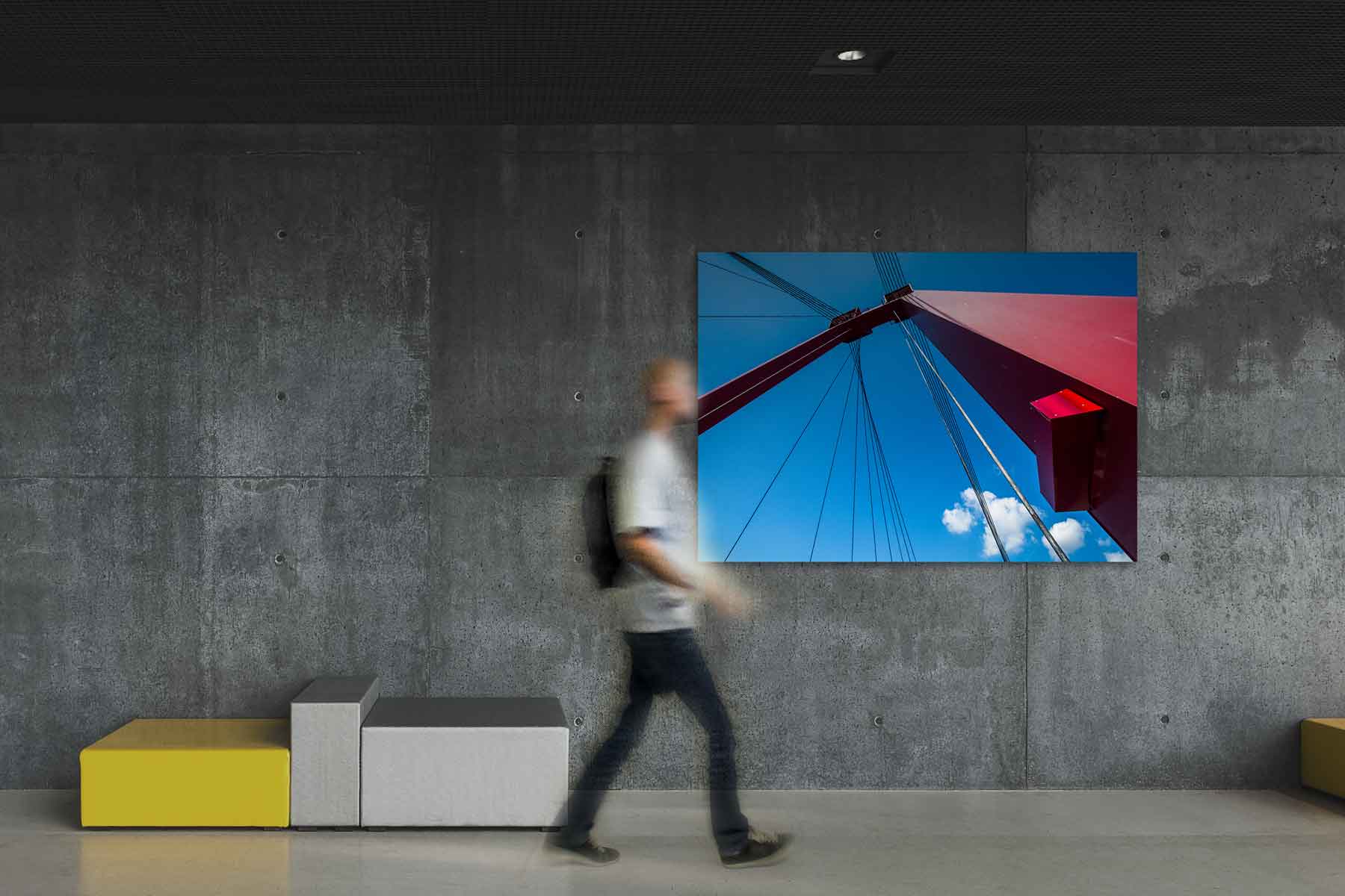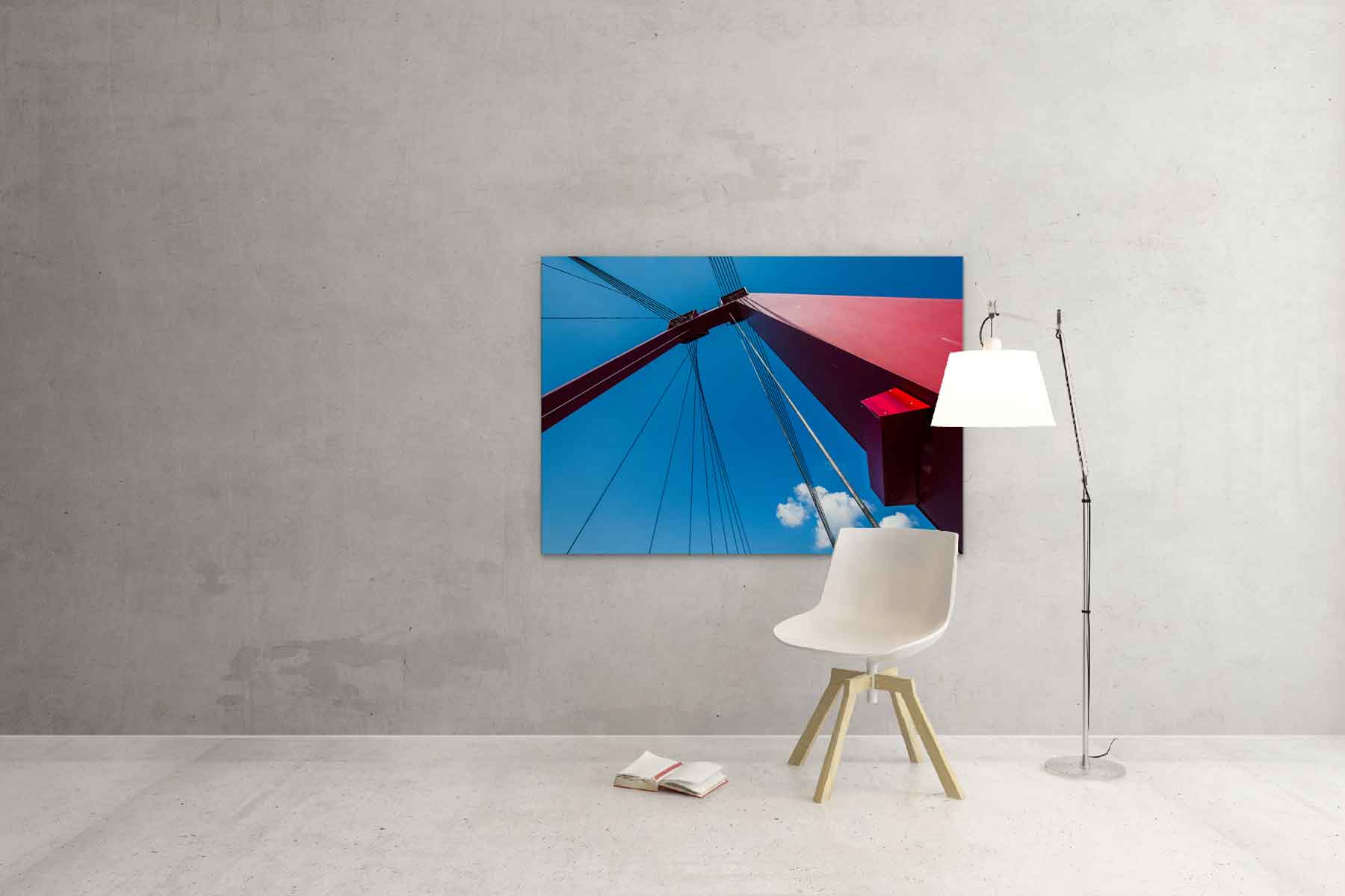 In deze foto zie je één van de twee ‘masten’ van de brug die hem zo herkenbaar maken, een mooie Rotterdam foto voor aan de muur.
