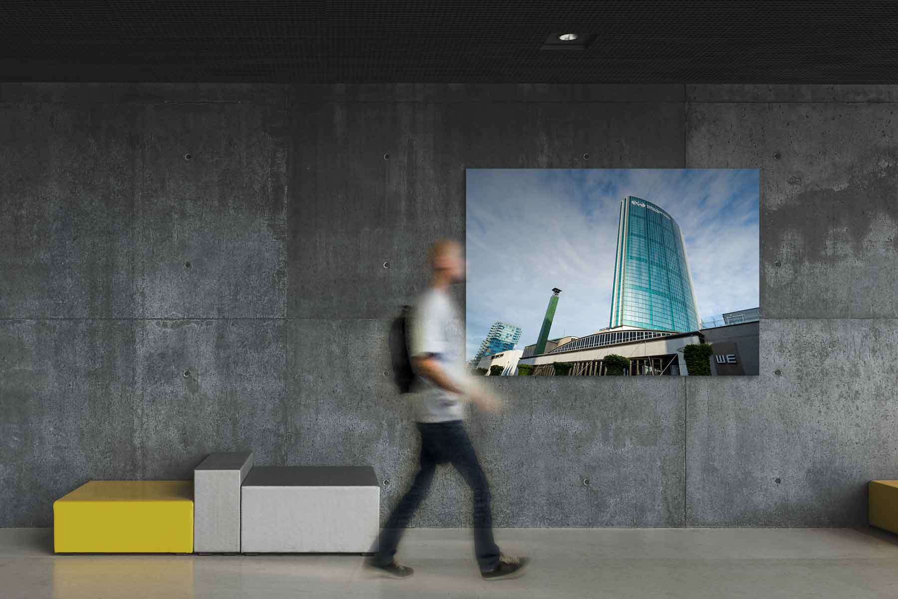 Ik vind het ontwerp van het gebouw mooi, het is simpel maar toch origineel. Wil je deze foto van het WTC in Rotterdam bij jou aan de muur?